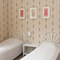 The room measures 14.5 m² and has two separate beds, a desk and a chair, a wardrobe and an armchair. Bed linen and towels are included in the fee.